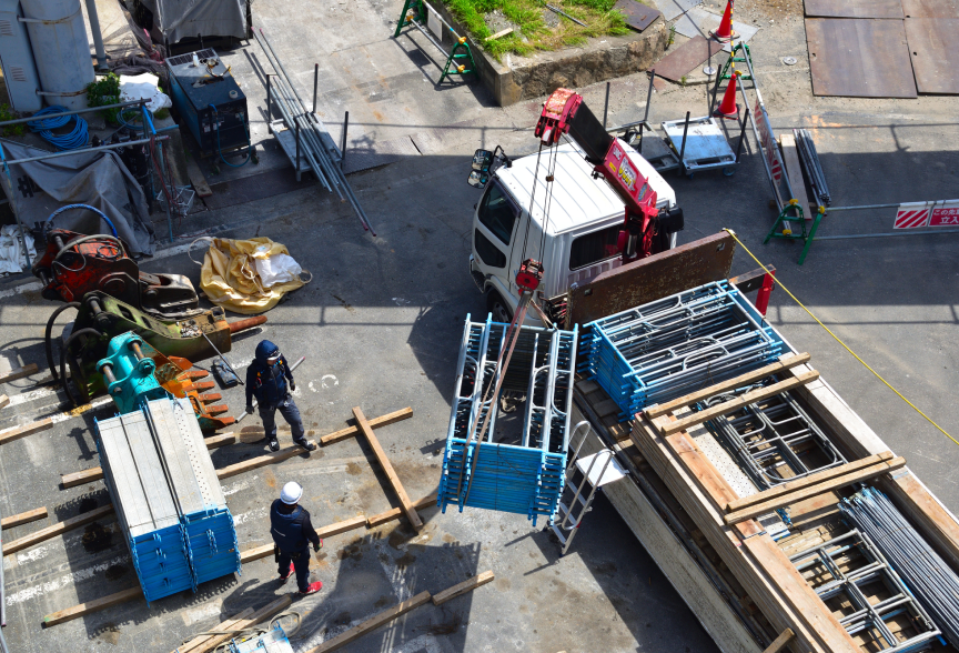 現場の進行をスムーズにするため、必要な資材の搬入・運搬を効率よく行います。