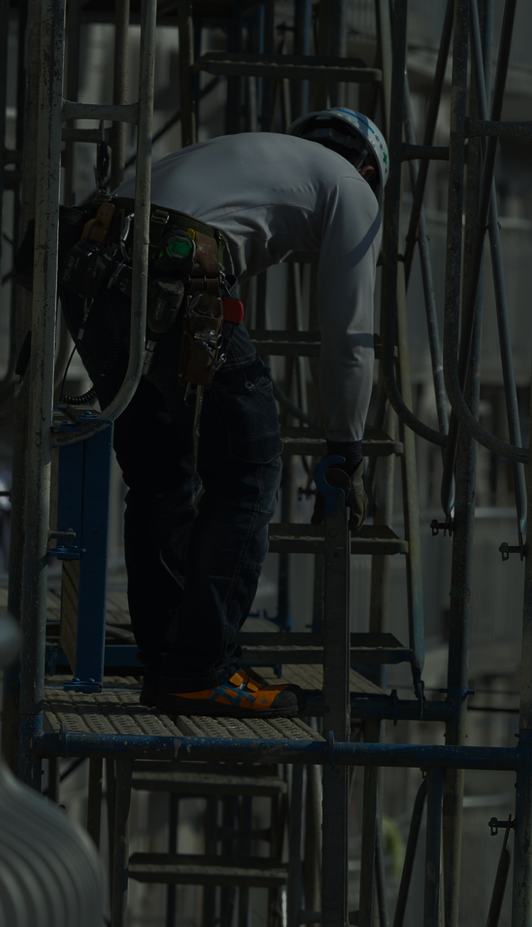 株式会社英嶋建設は、足場組立・解体工事を中心に、幅広い現場で安全性と品質にこだわった施工を行う建設会社です。